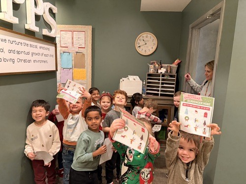 Our First Annual Christmas Scavenger Hunt today to celebrate the last day of school before Christmas Break. Each class explored the school and church with their teachers to discover all the holiday items on the list. They even took a trip through the church office and Mrs. Houk and Mrs. Neffs' offices. Lots of holiday cheer!